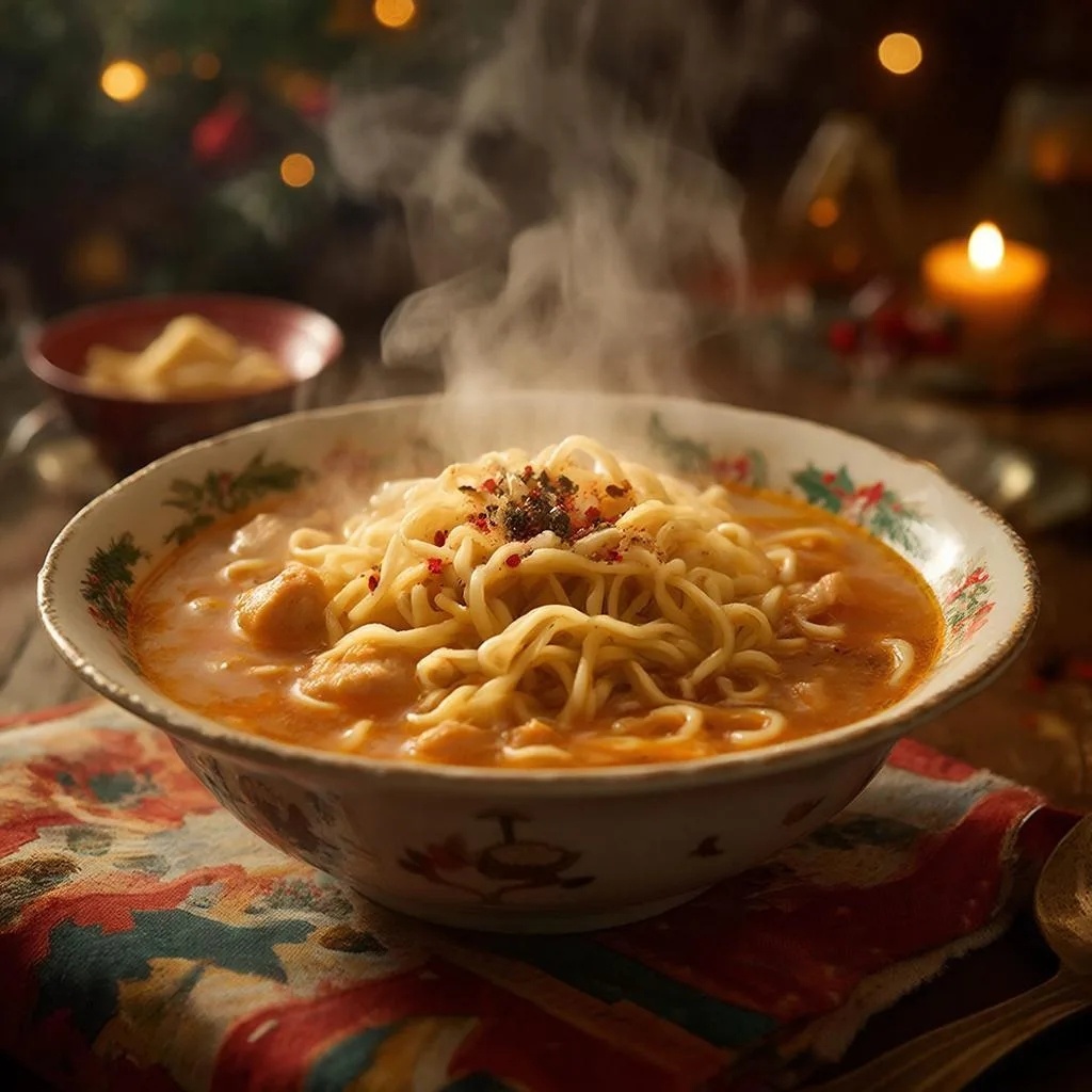 Когда бульон готов, настает время для лапши. Замешивается тесто из муки, яиц и соли, и оставляется отдохнуть. Тонкие пласты теста нарезаются на полоски желаемой ширины. В процессе варки лапши важно следить за временем: она готова всего через несколько минут после погружения в кипящий бульон.