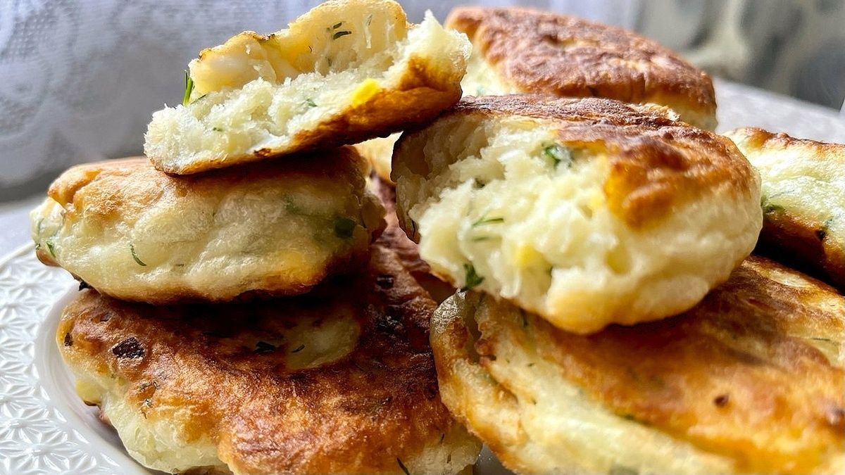 Для начинки можно выбрать зелёный лук с яйцом и укропом: яйца нарезать, лук мелко порезать, зелень соединить с начинкой. Другая версия — картофельное пюре, с которым тесто формируется как небольшие лепёшки, обжариваются до золотистой корочки и подаются горячими.