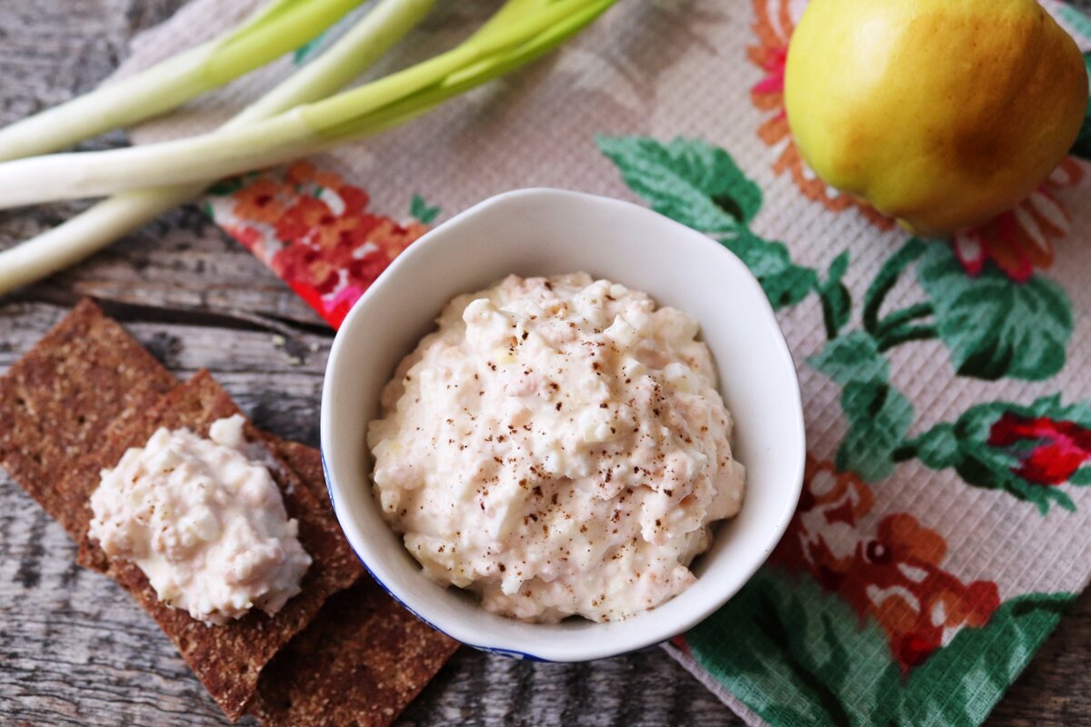 Первый шаг — отварить яйца и измельчить их вилкой. Затем нарежьте репчатый лук как можно мельче, чтобы он лучше вписался в текстуру паштета. Яблоко необходимо натереть на терке и сбрызнуть лимонным соком для придания свежести и предотвращения потемнения.