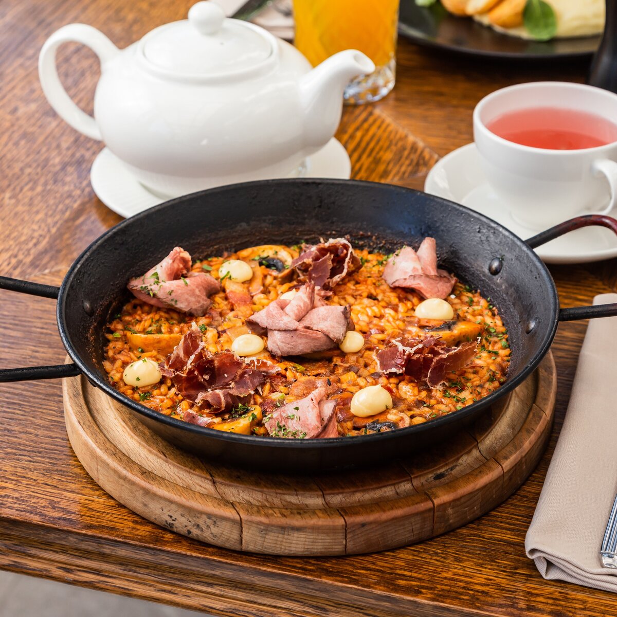 Паэлья с хамоном и говядиной — это настоящий кулинарный шедевр, который способен удивить даже самых взыскательных гурманов. Хотя хамон является скорее декоративным элементом, его присутствие придает блюду особый шарм. Этот уникальный рецепт был представлен шеф-поваром Алексеем Павловым из ресторана Barceloneta.