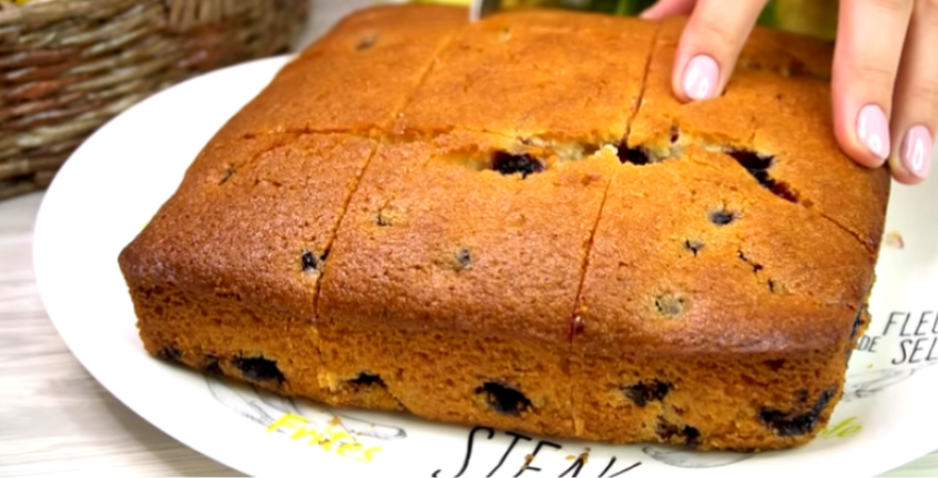 4. В последнюю очередь добавьте стакан ягод. Перелейте тесто в квадратную форму диаметром 19 см на 19 см и выпекайте.