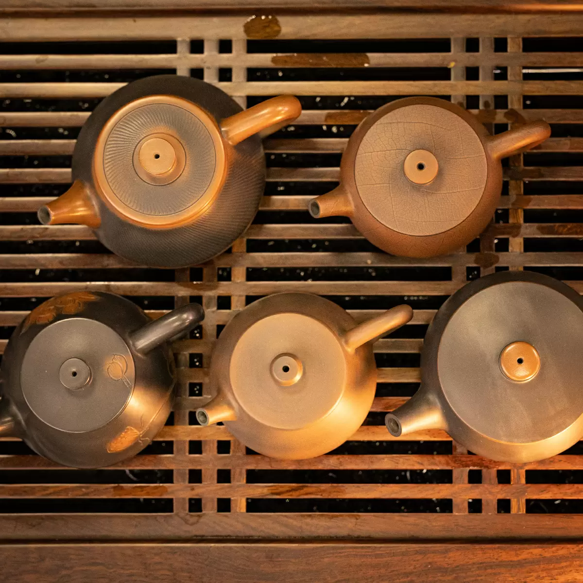 Обжигание в диапазоне 1200–1300°C доводит черепок до состояния ближе к камню: сосуд становится плотным, почти не впитывает запахи и сохраняет тепло долго. Такой чайник особенно удобен для заваривания выдержанного пуэра: он равномерно прогревает и поддерживает температуру, не вмешиваясь во вкус напитка.