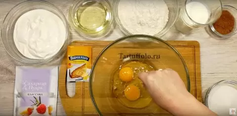Для оригинальности половину теста можно отложить, а в оставшуюся добавить какао-порошок, перемешивая до получения однородного цвета.