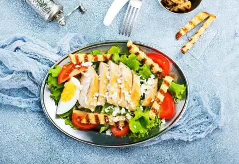В классическом варианте заправка довольно калорийная, поэтому вместо неё лучше взять греческий йогурт. Самый доступный и популярный вариант – это салат с куриным филе, которое не только недорогое, но и невероятно питательное. Хотя стоит помнить, что для истинного полезного питания предпочтение должно отдаваться именно грудке курицы, избегая использования мяса бедер и других частей.