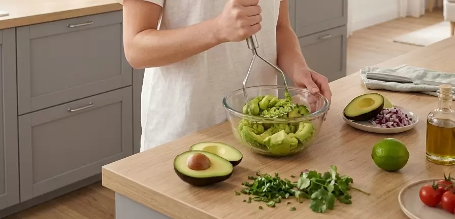 Авокадо богат полезными маслами и жирными кислотами, которые проникают в волос, питают его и восстанавливают. Он помогает улучшить эластичность и блеск волос благодаря витамину B5 и B6, а также содержит биотин и антиоксиданты, которые защищают от повреждений.