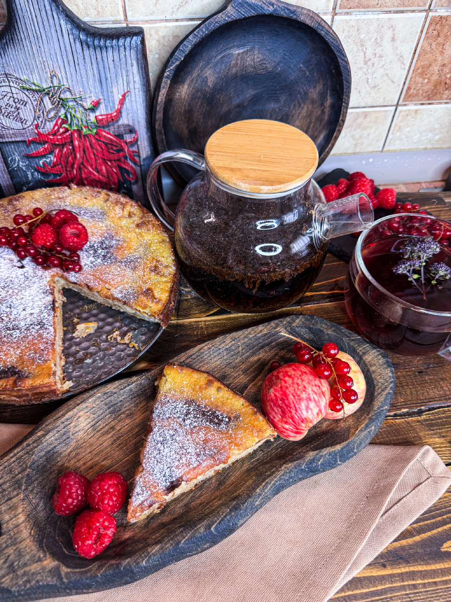 При подаче на стол, не забудьте присыпать пирог сахарной пудрой и добавить свежие ягоды для красивого оформления. Приятного аппетита!
