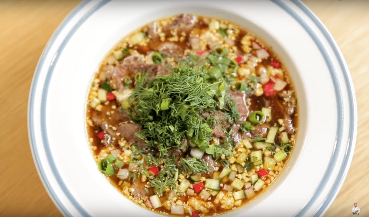Всего пара минут — и окрошка будет готова к подаче. Приятного аппетита!