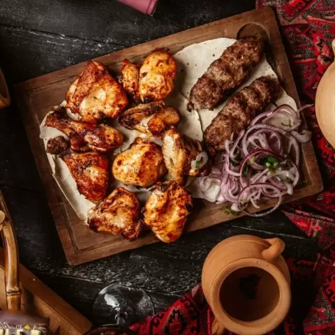 Использование сухой сковороды и добавление соли напоминает классическую мангальную технологию и помогает достичь нежного аромата мяса. По завершении жарки шашлык подают с разнообразными соусами — от традиционного ткемали до более экзотических гранатового или томатного. Это блюдо станет настоящим украшением любого стола, удивив даже самых требовательных гурманов.