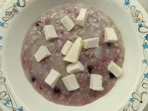 - Завтрак: овсянка на воде с добавлением льняного семени и замороженной смородины.