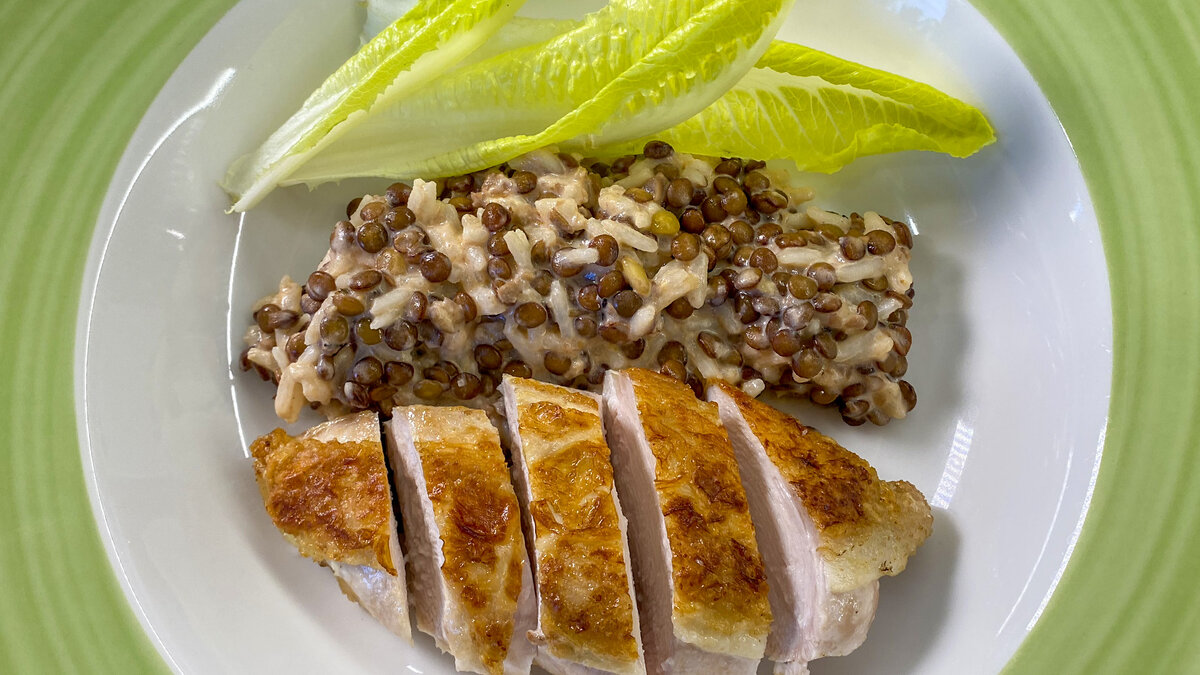 Сочетание нежной куриной грудки и чечевично-рисового гарнира создаёт настоящую кулинарную симфонию. Подготовьте данный гастрономический шедевр сегодня, и ваш ужин станет настоящим праздником для домашних!