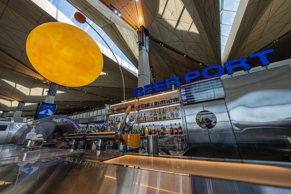 Известный бар Beergate, расположенный в зоне вылета международных рейсов, вновь радушно встречает пассажиров после обновления интерьера и расширения меню. Свежеотремонтированные помещения переносят гостей на борту международной космической станции, сохраняя оригинальную атмосферу.