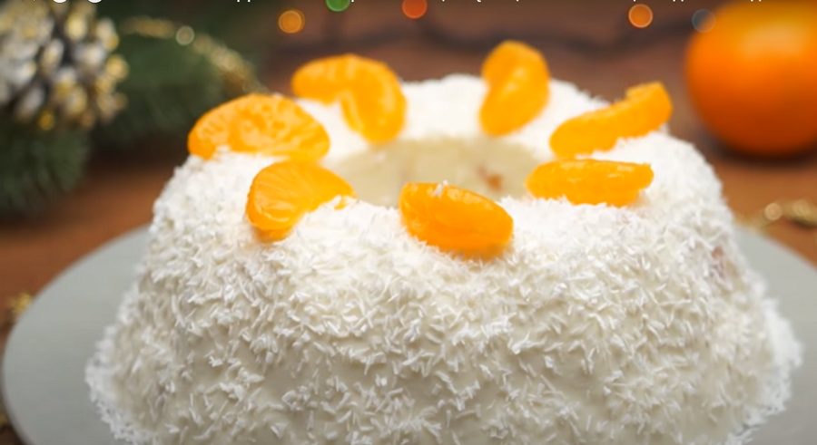 Перед подачей аккуратно извлеките торт, перевернув форму на блюдо, и украсьте кокосовой стружкой и оставшимися мандаринами. Порадуйте своих близких незабываемым десертом!